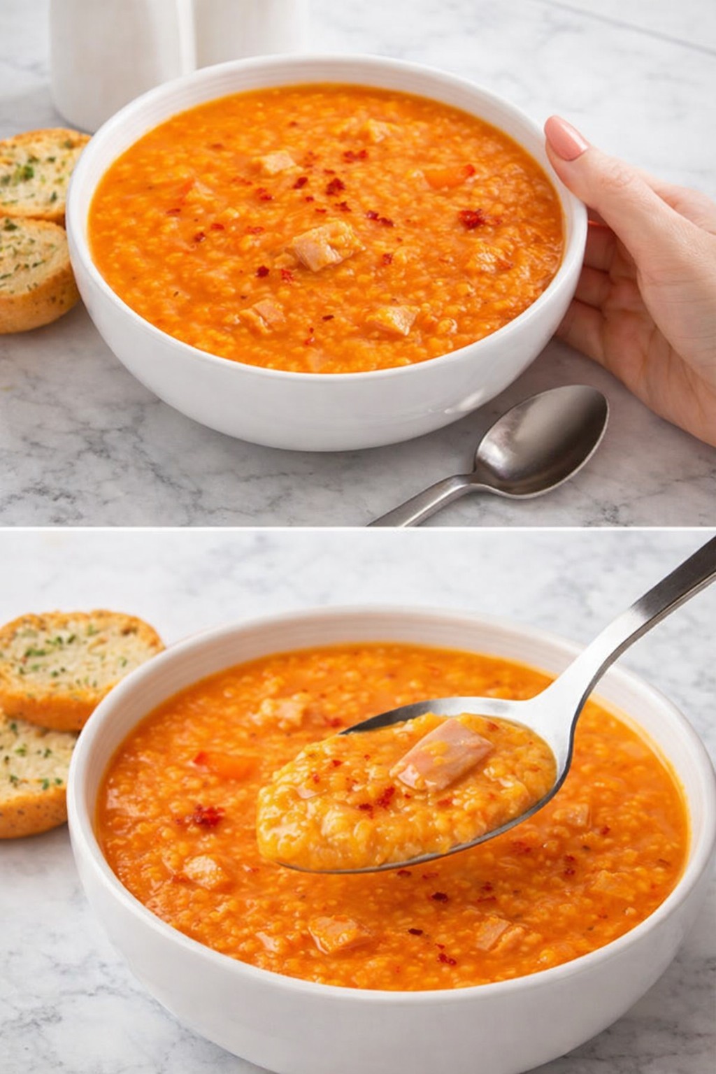 Questa zuppa è leggera ma nutriente, quindi adatta a chi segue una dieta ipocalorica o desidera mantenere un buon equilibrio tra carboidrati, proteine e fibre. Le lenticchie e il prosciutto cotto forniscono proteine, mentre le patate aggiungono carboidrati complessi, utili per avere energia senza appesantire. Il limone dona un tocco di freschezza, e il brodo di pollo contribuisce a mantenere il piatto ricco di sapore senza l’aggiunta di grassi e calorie in eccesso.